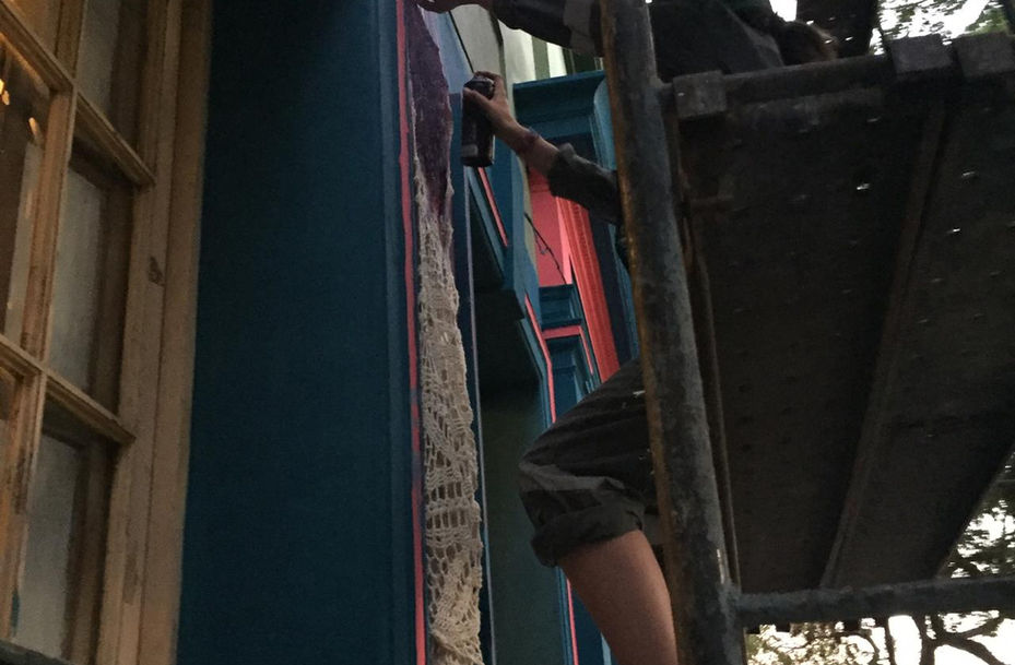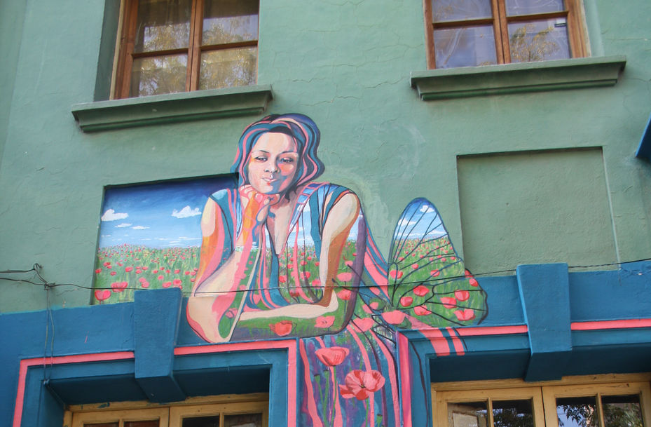 Todo lo que tenia pensado se transformó en otra cosa, como siempre de nuevo. Debe ser culpa de la mariposa. Mientras estuve arriba del andamio conversando con tu cara, con las líneas de la nariz y de la mirada, y con el gesto en la boca que siempre hacías en las fotos, mientras tanto, se quemó la Catedral de Notre dam, se suicidó Alan García y fue mi cumpleaños, casi se aprueba el tpp11 y Paloma Mami la lleva. La mujeres estamos cada vez más insertas en nuestra femenina revolución y las historias de amor se transforman. Muchas personas pasaron diciendo qué lindo, otros preguntando quién era la retratada, otro por baño, otros por talleres y uno que otro por una moneda. Hasta que algunos conocidos te reconocieron. Alivio. Tú afirmada mirando desde arriba con los colores de la casa, de la piel y unida a la sublime materia de un horizonte de amapolas. Tan lejos tan cerca, tan intocable y tan presente.